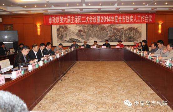 4月15日下午,市残联第六届主席团二次会议暨2014年度全市残疾人工作会议在秦皇岛大酒店召开。市残联主席团35位委员、机关全体干部及所属各中心班子成员参加会议。市政府副秘书长杨志有主持会议,市政府副市长王亚洲出席会议并作重要讲话,会议一致通过聘请市委副书记刘辰彦同志为市残联第六届主席团名誉主席。