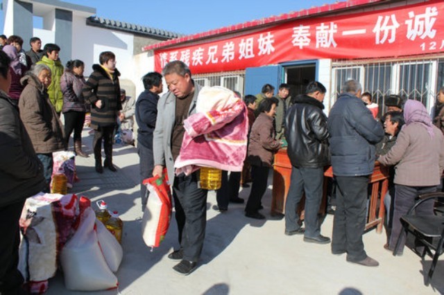 严冬临近,残疾群众的生活状况如何,能否温暖过冬是党和政府的最大牵挂。12月2日国际残疾人日来临之际,市残联为驻村帮扶点卢龙县东风村58名残疾人,送去价值3万元的米、油、毛毯等过冬生活用品,开展“情系残疾人,寒冬送温暖”爱心帮扶活动。